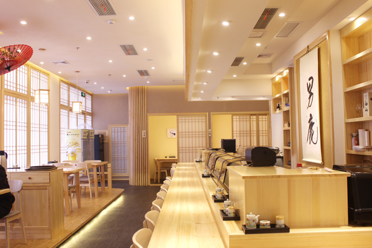 南鹿日式料理店在裝修設(shè)計中追求的不是奢華,富麗。而是天然、樸素,體現(xiàn)日本民族特色,保持料理店的傳統(tǒng)風(fēng)格。布局設(shè)計上滿足料理店對內(nèi)對外使用需求,且水平動線流暢。對內(nèi)包括廚房、倉庫、更衣室等區(qū)域,對外包括公共大廳、吧臺、走道、包房、收銀臺等區(qū)域。整體布局功能明確,獨(dú)具匠心,散發(fā)著東方古樸的異域風(fēng)情。用材